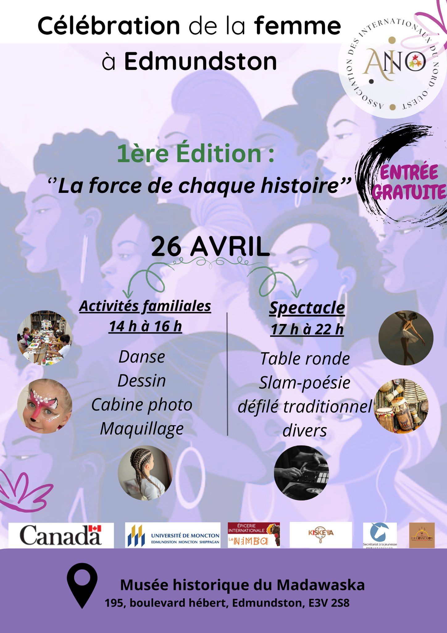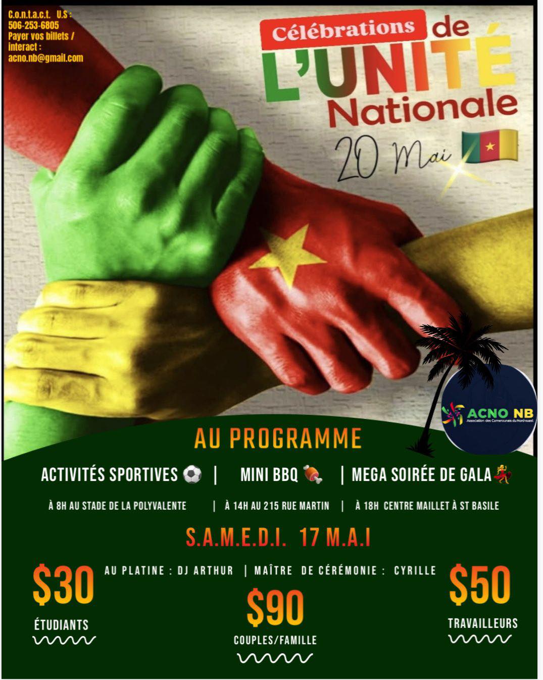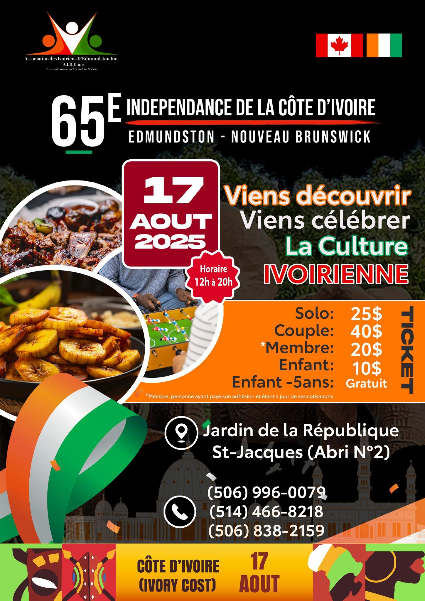Association des Ivoiriens d'Edmundston65e anniversaire de l'indépendance de la Côte d'Ivoire - 17 août 2025 Match amical - 18 mai 2024 Association des Camerounais du Nord-Ouest Barbecue - 25 mai 2024 Journée sportive - 28 juin 2025 Kanou In Color - 12 juillet 2025 Association des internationaux du Nord-OuestBBQ de l'intégration - 24 août 2024 Journée internationale de la femme - 26 avril 2025